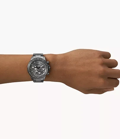 This 45mm Bannon features a grey sunray dial, multifunction movement and a smoke stainless steel bracelet.