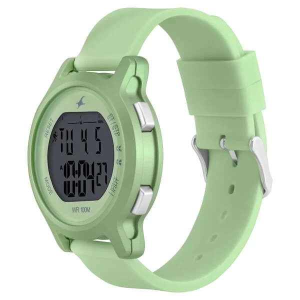 Fastrack Street Line Digital Dial Green Silicone Strap Watch for Girls
