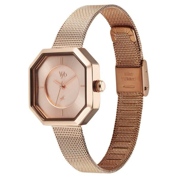 Fastrack Vyb Prodigy Quartz Analog Rose Gold Dial Stainless Steel Strap Watch for Girls