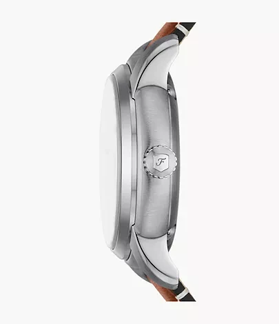 This expertly crafted Fossil Heritage watch is the result of our decades-long dedication to quality watchmaking. Featuring a three-piece case with a stepped profile, a blue skeleton dial showcasing the precision automatic movement, a double-domed, scratch-resistant sapphire crystal and brown leather strap. Fossil leather products support responsible manufacturing via the Leather Working Group.