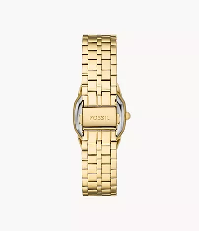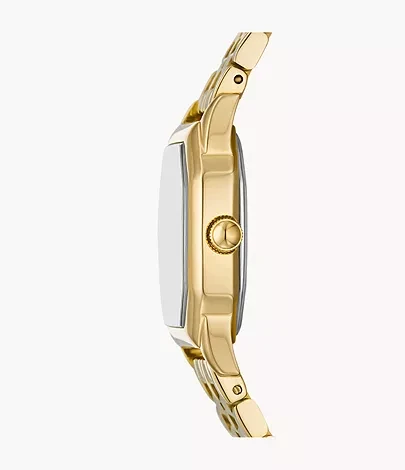 Inspired by a classic archival style, Harlow brings the sophistication of the past to modern day. This intricate polished gold-tone stainless steel five-link bracelet watch features an octagonal-shaped case, textured cream dial and three-hand movement.