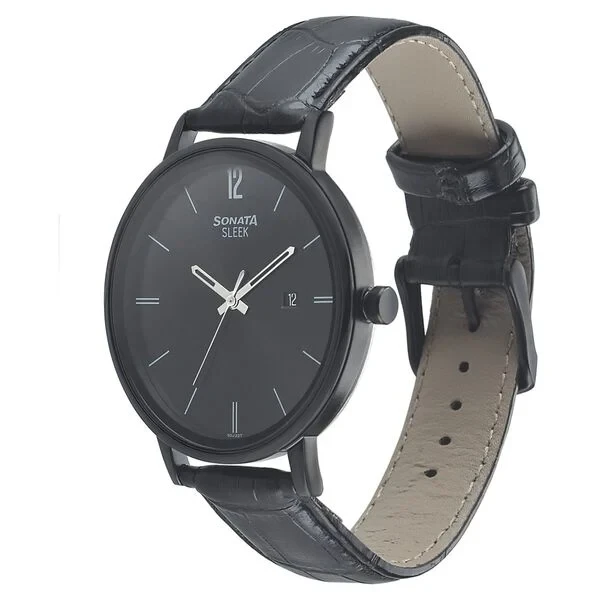 nr7131nl01 Sonata Quartz Analog with Date Black Dial Leather Strap Watch for Men