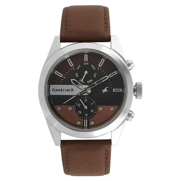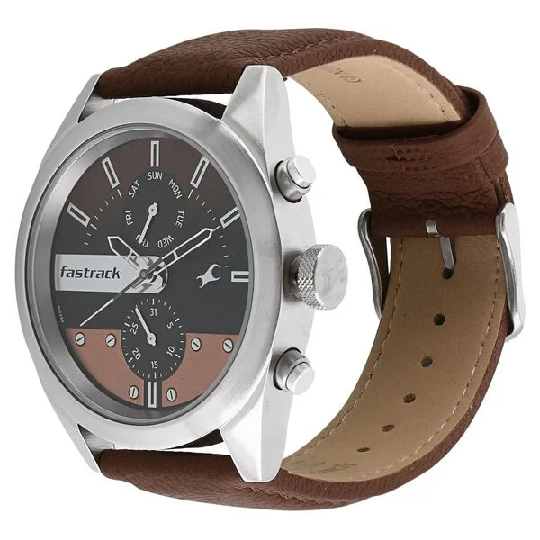 Fastrack All Nighters Quartz Multifunction Brown Dial Leather Strap Watch for Guys