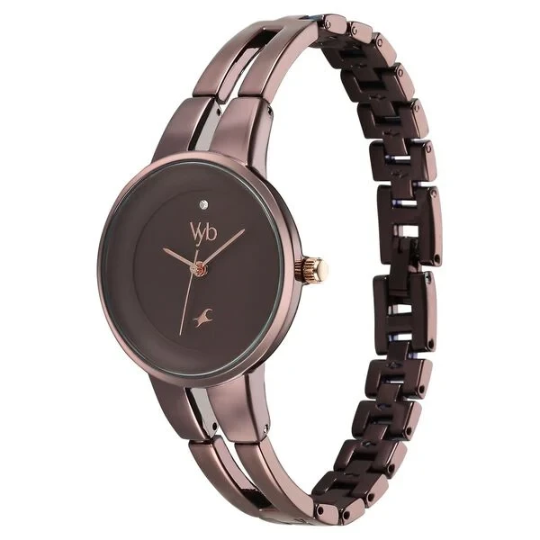Fastrack Vyb Halo Quartz Analog Brown Dial Metal Strap Watch for Girls