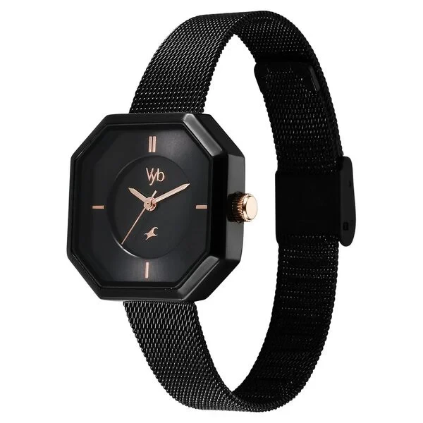 Fastrack Vyb Prodigy Quartz Analog Black Dial Stainless Steel Strap Watch for Girls