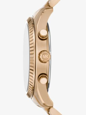 Designed with the aspirational man in mind, our Lexington watch takes sleek and streamlined to a whole new level. The beveled beige gold-tone stainless steel bezel and bracelet strap provide tactile texture, while the contrasting date function and chronograph dials give it a bold finish.