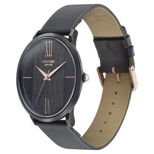 sp70004kl02 Poze by Sonata Quartz Analog Black Dial Leather Strap Watch for Men